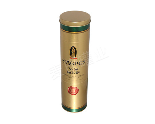 這款酒瓶鐵盒包裝產品,其鐵盒結構為三片罐(蓋、身,底兩三部分組成)。蓋子為外卷線蓋設計,罐身有飛邊打磨處理,預彎內線頸口,與縮口蓋能緊緊結合,保證鐵罐內部空間的密封性。此款白酒鐵罐的材質為馬口鐵料制成,因其的金屬延展性能,使得鐵盒能在短時間內進行沖壓成型,是國內制作效率高的馬口鐵紅酒禮盒產品之一。