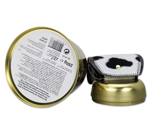 。在材質上可選擇0.23-0.30mm的馬口鐵或磨砂鐵制作;印刷可選用單面或雙面專色/四色印刷處理;上油方面,可過啞光油、皺紋油、珍珠油、爆炸油、珠光油等;配套產品有手提袋、內托、鐵扣、標牌、紙箱等產品。