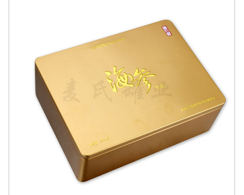 這款麥氏罐業打造的方形海參鐵盒,經典的長方形造型,搭配精美的印刷圖案,彰顯產品的大方,符合消費市場的需求。這款方形海參鐵盒,印刷安全不掉色,不染色,幫您提升產品的包裝檔次,吸引消費者的青睞,增加產品銷量。