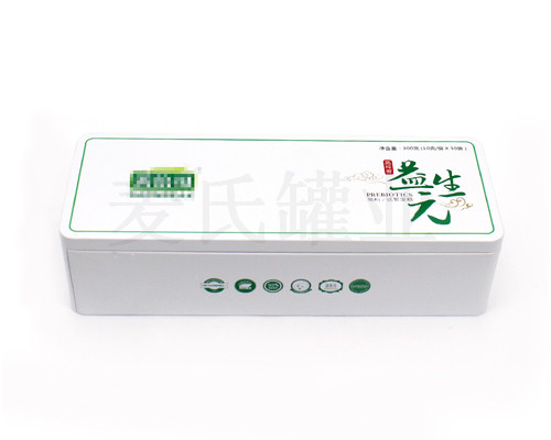 此款益生菌粉馬口鐵盒結構為帶鐵扣鑼底,表面光滑平整,不易劃手。益生菌粉馬口鐵盒做工精細,盒蓋與盒身配合良好便于打開,骨位平滑。而此款鐵盒具有耐蝕性、防潮性等優點,印刷工藝更為一絕,得到眾多保健品企業的一致好評!