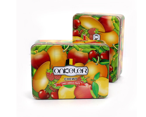 此款手提奶糖鐵盒為單面CMYK四色印刷處理,外過水性亮光油,內涂透明油,過油目的不僅能提高鐵盒整體效果,具有強烈的金屬質感外,還對鐵盒印刷面形成一層致密的保護膜,對鐵盒刮花、防銹起到一定的防護作用。除了過光油、透明油外,客戶還可選擇過爆炸油、皺紋油、珠光油等.