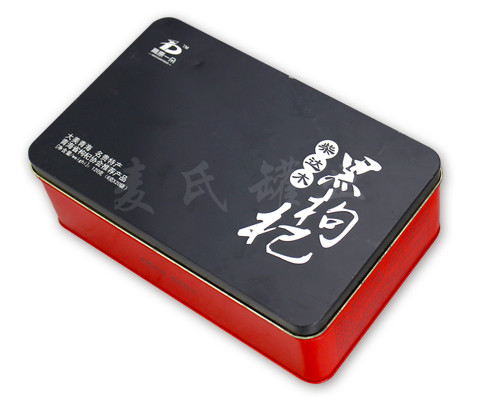 此款貢果黑枸杞鐵皮盒結構是三片罐,縮口罐身形式,由蓋、身、底組合而成,蓋子為內卷線天地蓋,盒底是內卷線鑼底制成。所采用的材質為0.23mm的鍍錫馬口鐵制成,盒形是目前歡迎的金屬包裝盒,目前市面上的鐵盒制作材料有兩種,一種是馬口鐵,另一種為磨砂鐵,根據您的產品需求,可選擇其中之一的磨砂鐵料進行制作,鐵盒性能會變得更加優異。