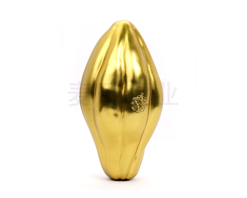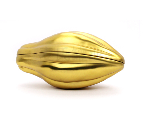 形狀為創意的瓜形造型打造,規格為185mm*100mm*95mm ,可滿足包裝500g不等的食品、茶葉、禮品等產品。其結構為兩片鐵罐,鐵盒全身為拉伸工藝成型制作。這款瓜形禮品鐵盒子擁有創意的鏤空網狀設計,