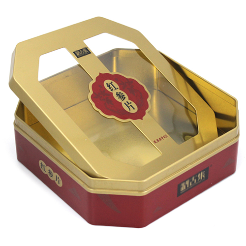 此款紅參片靈芝通用馬口鐵盒的尺寸為220*220*65mm,為了順應多樣化的市場包裝需求,這款茶葉馬口鐵盒可做成心形、正方形、橢圓形、車形、書本形等異形造型。