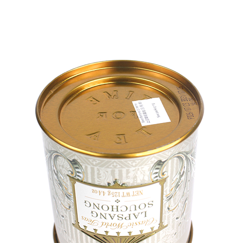 這款馬口鐵紅茶鐵罐包裝為單面CMYK四色印刷處理,外過水性亮光油,內涂金油,過油目的不僅能提高鐵盒整體效果,具有強烈的金屬質感外,還對鐵盒印刷面形成一層致密的保護膜,對鐵罐刮花、防銹起到一定的防護作用。除了過光油、透明油外,客戶還可選擇過皺紋油、珠光油、爆炸油等。