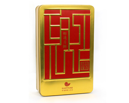 這款六個裝月餅鐵罐子,鐵盒整體結構為經典又不失大氣的長方結構,蓋子打開方式為外卷線天地蓋,鐵盒表面作有雕刻工藝設計,可令圖文部分立體化形式表現出來,增加了鐵盒包裝的視覺感。