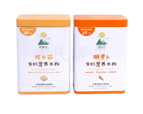 很多平蓋益生菌固體飲料鐵盒上都有臺階,臺階的功能在于方便同一尺寸的鐵盒相互重疊,這非常方便的商場貨架上堆放產品并且有效利用貨架空間。這款益生菌固體飲料鐵盒,采用國產一級馬口鐵為基材,專色印刷工藝。想了解更多嬰幼兒保健品鐵盒包裝,請致電:186-7632-2818,清遠麥氏罐業恭候您的到來!