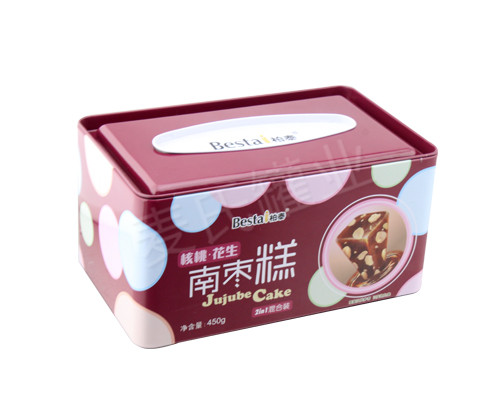 品名:鐵皮麻糖包裝禮盒 能否定制:可定制,可加印LOGO。 產品規(guī)格:長度215MM 寬度150MM 高度87MM 重量110克-130克