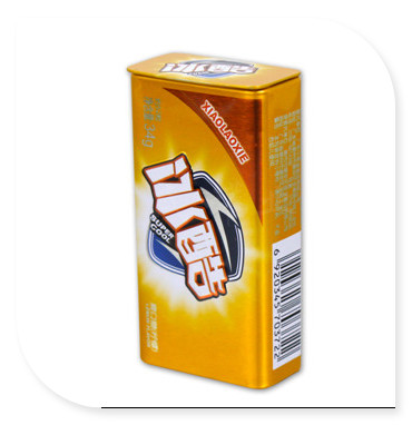 這款小號壓片糖果鐵罐子的材質選用國產鍍錫馬口鐵制成,具有優異的耐撞性、耐蝕性、抗壓性等特點,是包裝各種美味含片糖果的產品。這款馬口鐵罐的版面設計具有豐富的現代時尚感,適合當代年輕人的創意追求,可充分體現這款產品的特點。這款糖果鐵罐目前被炫邁、綠箭等糖果商家所采用,產品在市場上亦掀起一場熱潮。