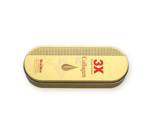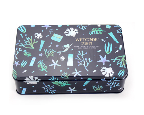 這款眼膜貼鐵皮盒,是一款精美實用的化妝品鐵盒。鐵盒表面印刷工藝為單面專色印刷,內(nèi)外都過水性亮光油。鐵盒整體為三片罐結(jié)構(gòu),罐身有飛邊打磨處理,預彎內(nèi)線頸口,能與雙層內(nèi)塞蓋緊緊閉合,這有效的提升了鐵盒內(nèi)部空間的密封度。而鐵盒所采用的鐵料為鍍錫馬口鐵制成,具有密封性能,延展性能,使得鐵盒在短時間內(nèi)進行沖壓成型。
