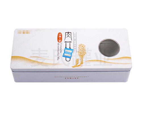 這款斤裝肉蓯蓉鐵盒包裝,創(chuàng)意開天窗金鎖陽(yáng)金屬包裝禮品盒,采用0.25mm厚度的一級(jí)馬口鐵為鐵料,國(guó)外制罐設(shè)備和技術(shù)打造而成,四色印刷工藝,開窗式結(jié)構(gòu)設(shè)計(jì),該款鐵盒一上市,就得到廣大消費(fèi)者和客戶的各種青睞。