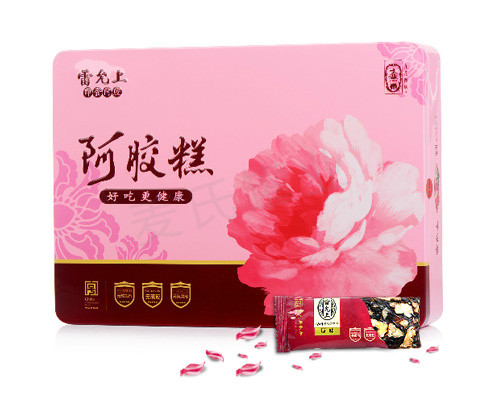 阿膠枸杞顆粒鐵罐印刷,可選用國家進口鍍錫馬口鐵或磨砂鐵料來印刷,具有良好的抗壓性、密封性、防腐性等特點。鐵罐規格為306*136*88.5mm,可包裝180g的阿膠八珍糕。